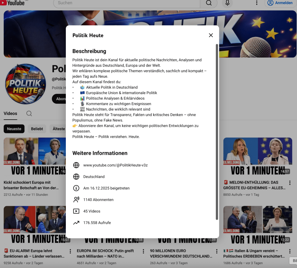 Ganz besonders gern bedienen sich diverse andere „ContentManager“ bei diesem Kanal in bereits deutscher Übersetzung und John Mearsheimer, der Wirtschaftswissenschaftler aus Chicago, wird besonders gern mit KI imitiert, seine Äußerungen ohne Verweis auf Auftritt, Kanal, Gespräch mit wem und wo, einfach zu einer „Story“ gestrickt, der vertrauenswürdig aussehende ältere Herr wird es ja wissen……