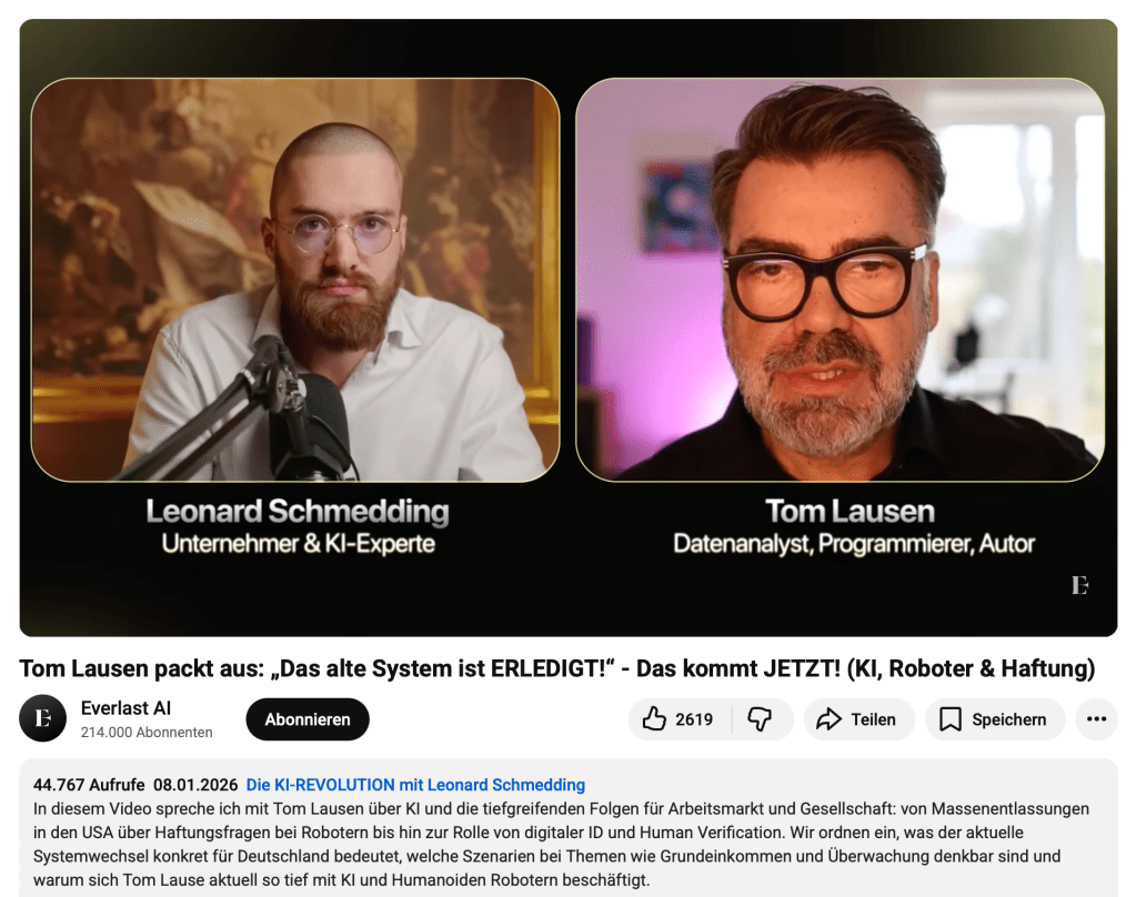 Hier sprechen noch echte Menschen über KI und vor allem ein Statement von Tom Lausen wird in Zukunft sicher dringend notwendig werden….wer haftet für das was KI und Roboter treiben…