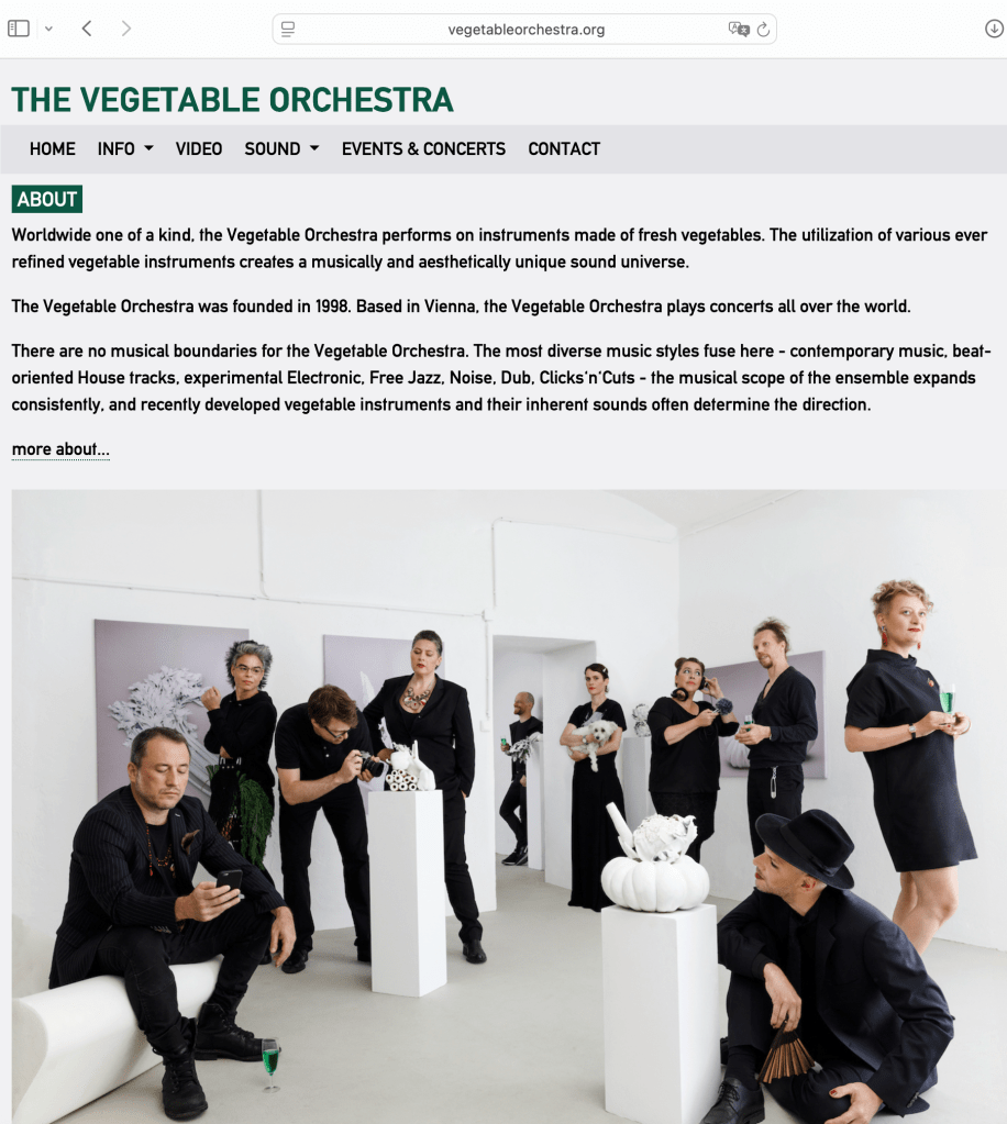 GEMÜSE performativ in der Kunst, als Photographie und als Musik