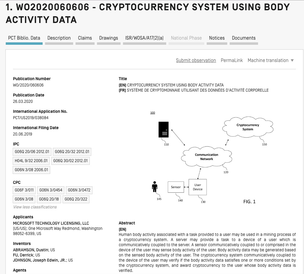 Microsoft hat dieses Patent angemeldet, im Windschatten von den weltweiten Impfplänen des Bill Gates, die vom Mainstream geliked nicht analysiert werden. Alarmierend sind seine Verwicklungen mit der fragwürdigen Weltgesundheitsorganisation WHO und diversen Pharmafirmen…..und ja, er will auch das Bargeld abgeschafft wissen und vieles mehr…..da fehlte gerade das noch: WO2020-060606