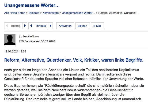 Heute hat man den Eindruck, dass sich alles umgekehrt hat, die angeblich Linken packeln mit den Investoren, zensieren, das Zielpublikum ist reichlich unklar, Wortgefechte ersetzen Taten. Zu allem Überfluss glauben sie auch noch die Demokratie gepachtet zu haben. Die Tatsache, dass sich in einer Demokratie unterschiedliche Positionen (Parteien) im Diskurs auf machbare Projekte einigen müssen ist ihnen entglitten, der Gegner wird mit Lug und Trug in eine Ecke gedrängt und als ultimatives Monster gebrandmarkt.