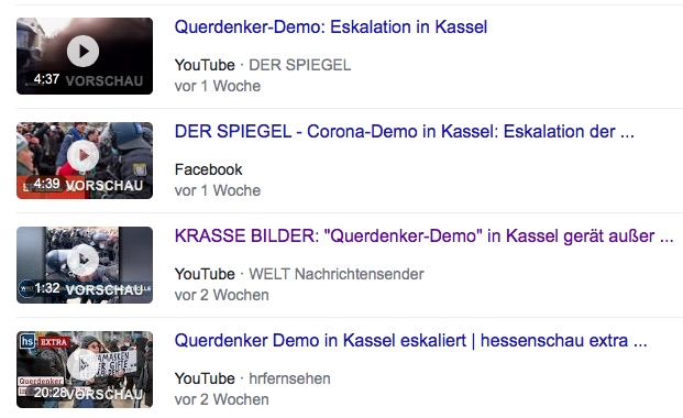 Das gleiche Verwirrspiel wird mit allfälligen Demonstrationen betrieben, die angefangen von den Organisatoren, die eben nicht die Querdenker waren, bis zu den Gewalttätigkeiten, die eben (kaum oder nicht, auch auf den vorgestellten Videos) stattgefunden haben, werden gezielt massenhaft harmlose Demonstranten als kleine Gruppe gewalttätiger Rechter stilisiert. Schaut man andere Videos an, kommt man zu ganz anderen Schlüssen……die findet man aber oft wenige Tage später nicht mehr….nur die“richtige“ IDEOLOGIE ist geschichtswürdig?????