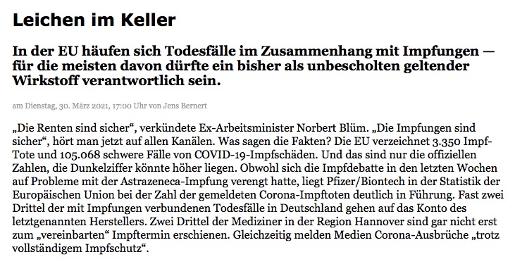 Hier kommt das Wortspiel zum tragen, wenn man diesen Satz einzeln voranstellt, kann man den Immunologen als Covid-Leugner abkanzeln und löschen, und das weil es Strategie ist, keine Förderung des natürlichen Immunsystems zu propagieren, sondern nur dessen künstlichen Ersatz, es vertuscht werden soll, daß hier Einfaches mit Kompliziertem und Teurem ersetzt werden soll, das wir in vieler Hinsicht bezahlen müssen.