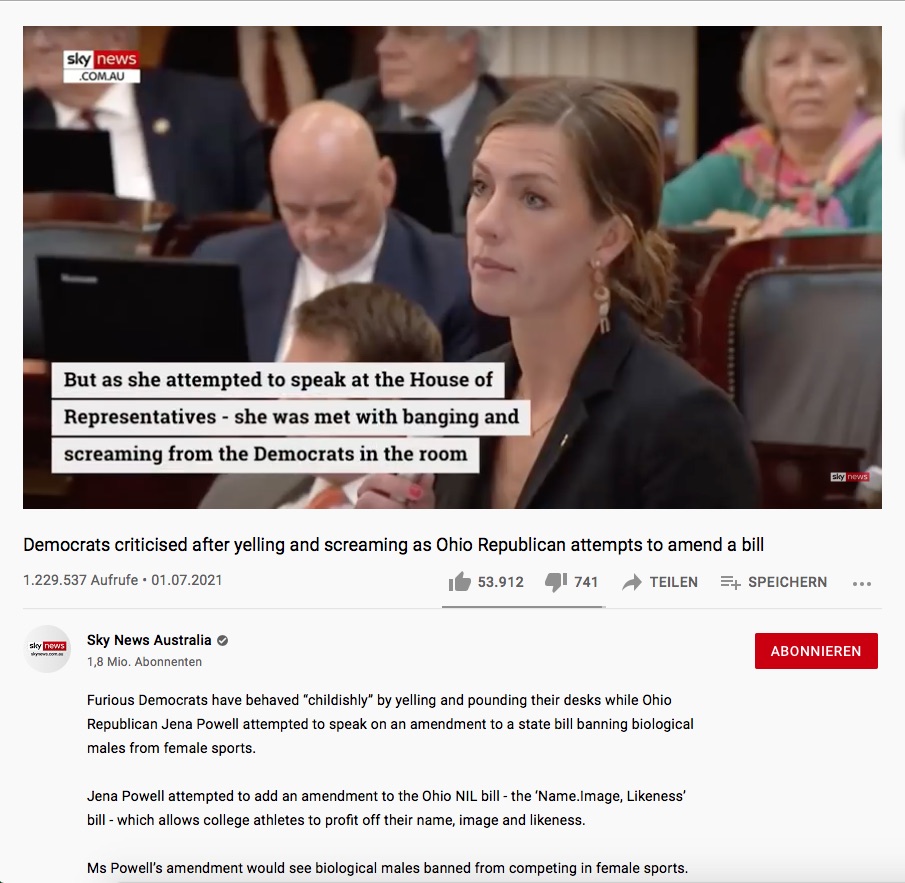 Und so verstehen Demokraten Demokratie? Was uns nicht in den Kram paßt darf nun nicht mehr vorgetragen werden – konkret die Konkurrenz im Sport der Frauen, durch als Frau deklarierte Männer.