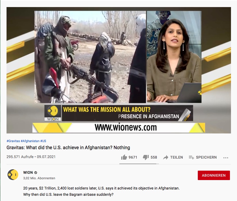 Seit vielen Jahren glauben westliche Länder, allen voran die USA, unter dem Vorwand für Demokratie sorgen zu müssen in der dritten Welt militärisch eingreifen zu dürfen, und das geht in aller Regel schief. Die USA hat nun Afghanistan verlassen, unter Zurücklassung von massenhaft Waffen und Fahrzeugen.