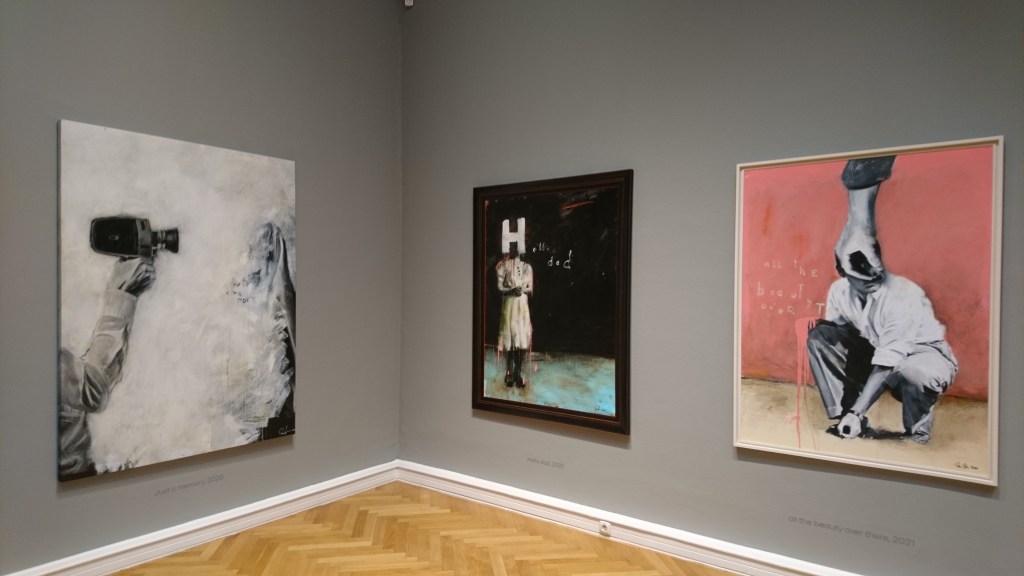 Neben PROOF OF ART ist im gleichen Stockwerk noch eine Ausstellung von Parov Stelar zu sehen und hören; er ist vorwiegend Musikproduzent. Seine visuellen Arbeiten werden hier erstmals gezeigt; das paßt einfach weil er auch NFTs macht und diese auch Kurzclips/Videos sein können. Doch auch die großen Bilder haben ein Potential Zeitgeist einzufangen.
