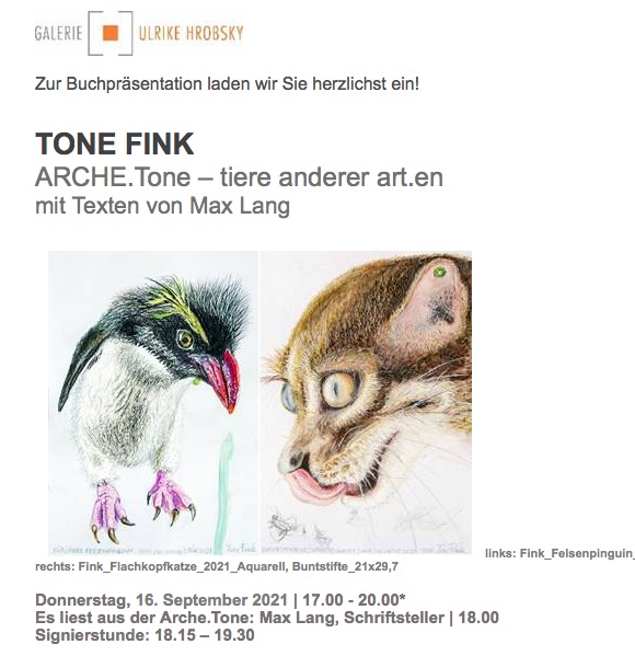 DER KÜNSTLER TONE FINK HAT DAS CORONAJAHR IN DER ZU IHM PASSENDEN POSITIVEN STIMMUNG VERBRACHT, UND TIERE DIE VOM AUSSTERBEN BEDROHT SIND GEZEICHNET UND GEMALT. SIE WERDEN NUN ZUM BUCH GEFASST PRÄSENTIERT.