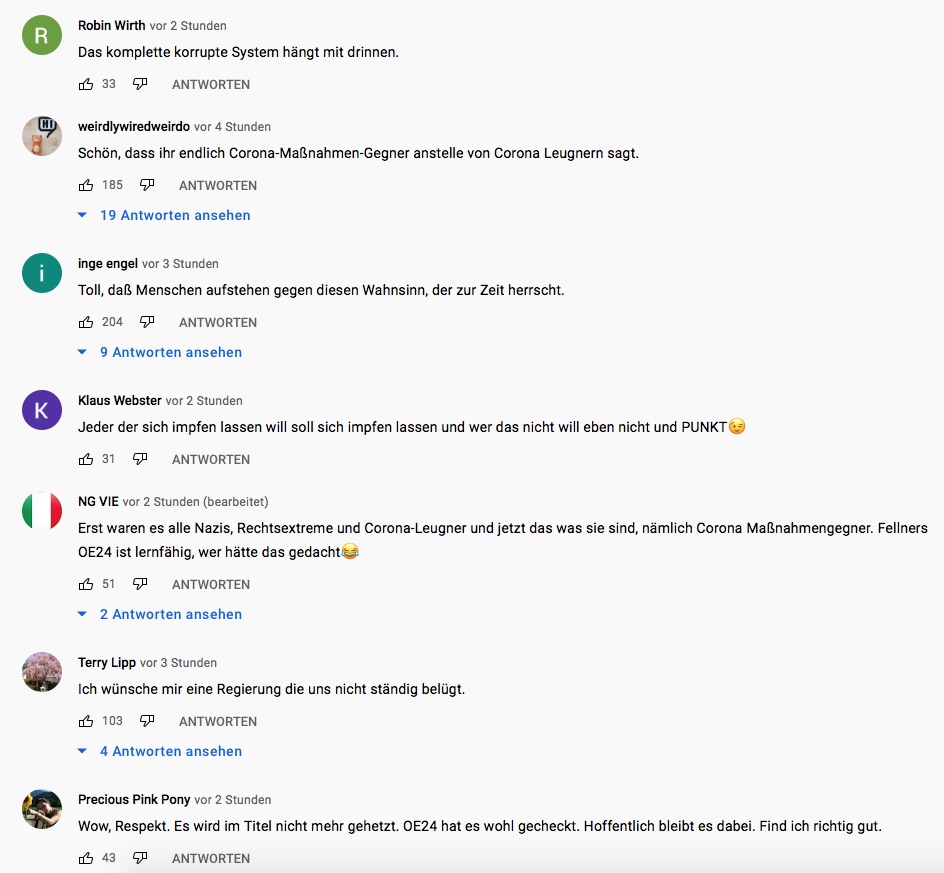 DIE NEUE CORONADEMO AM 11. 09. 2021 IN WIEN WIRD NICHT MEHR MIT „LEUGNER“ ODER ÄHNLICHEM BLÖDSINN BETITELT, WAS SOFORT ZU WOHLWOLLENDEN POSTINGS FÜR DEN KANAL SORGT. WIRD DER UMGANGSTON JETZT BESSER?