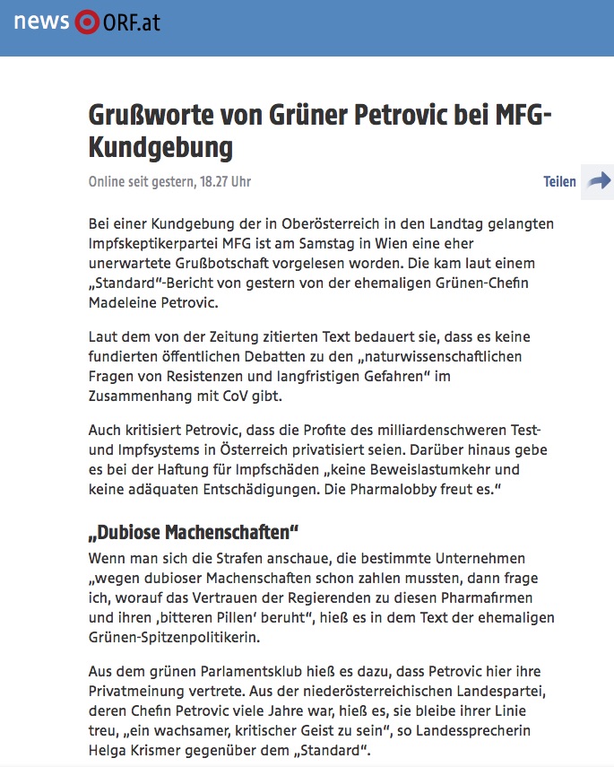 Einige erfreuliche Nachrichten sind auch im hitzigen Gefecht der Unwägbarkeiten festzustellen, mit klaren, nachvollziehbaren Standpunkten, die Sinn machen, sinnvoll kritisieren, Gegenvorschläge machen, die machbar wären, helfen würden, weniger kosten.