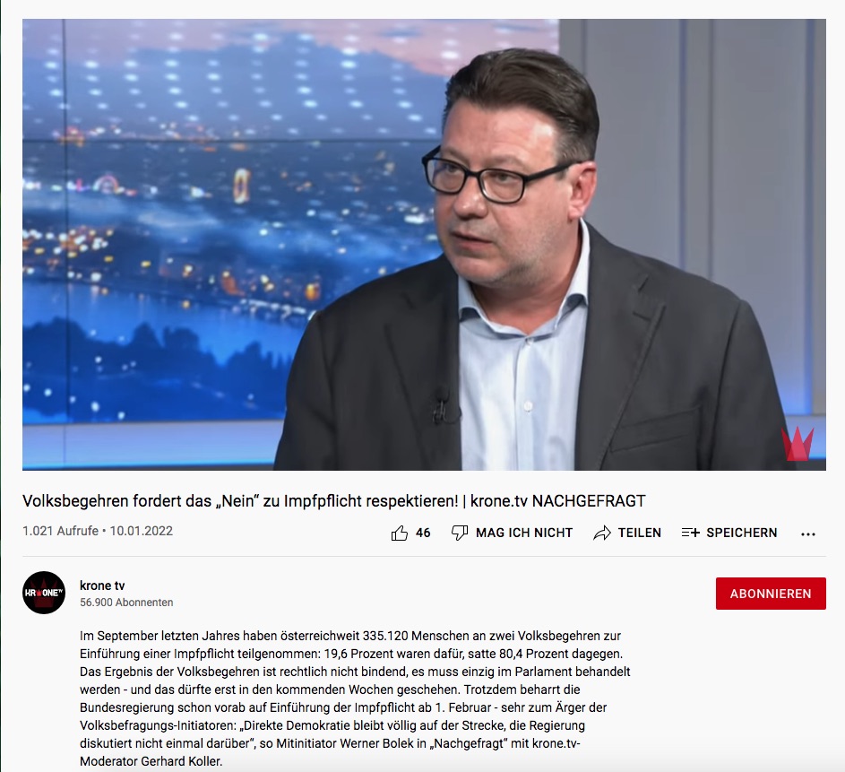 Hier will man nicht primär stürzen, man will die Träger von Verantwortung wachrütteln, mit zum Teil humorvollen selbst gebastelten Plakaten (Spritzer statt Spritze, mit einem Porträt von Kogler, der für seine Schwäche für Alkohol bekannt ist) Dennoch, es sieht nicht so aus, als ob sich die Menge nicht klar darüber wäre, dass Demokratie auf dem Spiel steht, nachhaltig bedroht ist, in den zwei Jahren „Plandemie“ ist unendlich viel verloren gegangen. Aber, die Menschen wollen sich nicht versklaven lassen, und sie werden nicht aufhören, sich gegen diese ungesetzlichen Verordnungen zu stellen.