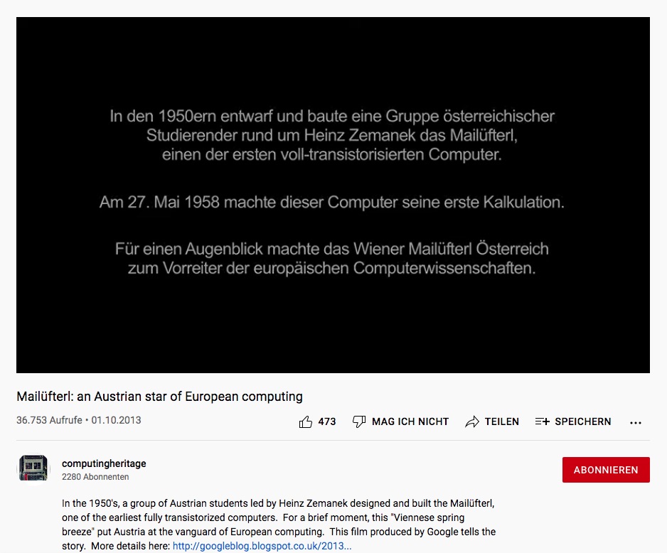 DAS MAILÜFTERL IST NACH WIE VOR IM TECHNISCHEN MUSEM WIEN.