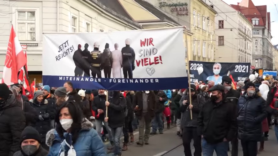 Immer wieder die Krankenschwestern + Pflegepersonal auf den Demos, inzwischen gibt es aber nicht nur viel ganz normale Leute aus allen Berufen, alt und jung, sondern sogar Polizisten, denen der Demokratie-Abbau gar nicht gefällt.