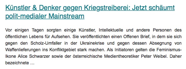 Promis aus Kunst und Kultur/Gesellschaft melden sich zu Wort und fordern Vernunft ein! Jene Bereiche, die oft mal eskalieren, sehen jetzt den Punkt erreicht um die „bürgerliche“ Gesellschaft daran zu erinnern, dass sie Verantwortung trägt und Verstand einschalten soll…