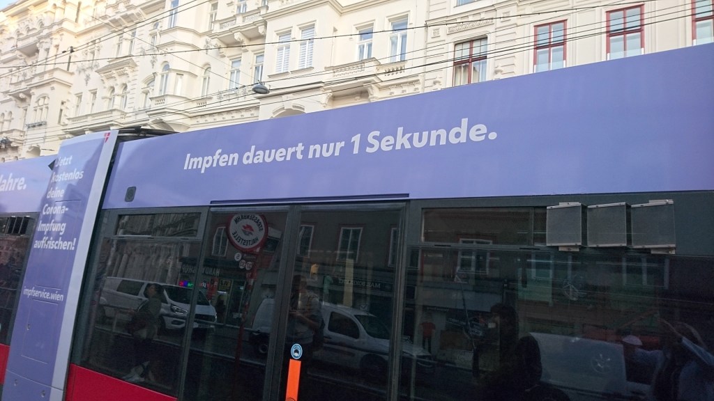 Nun ja, die zweitdümmste Impfwerbung fährt Straßenbahn in Wien.