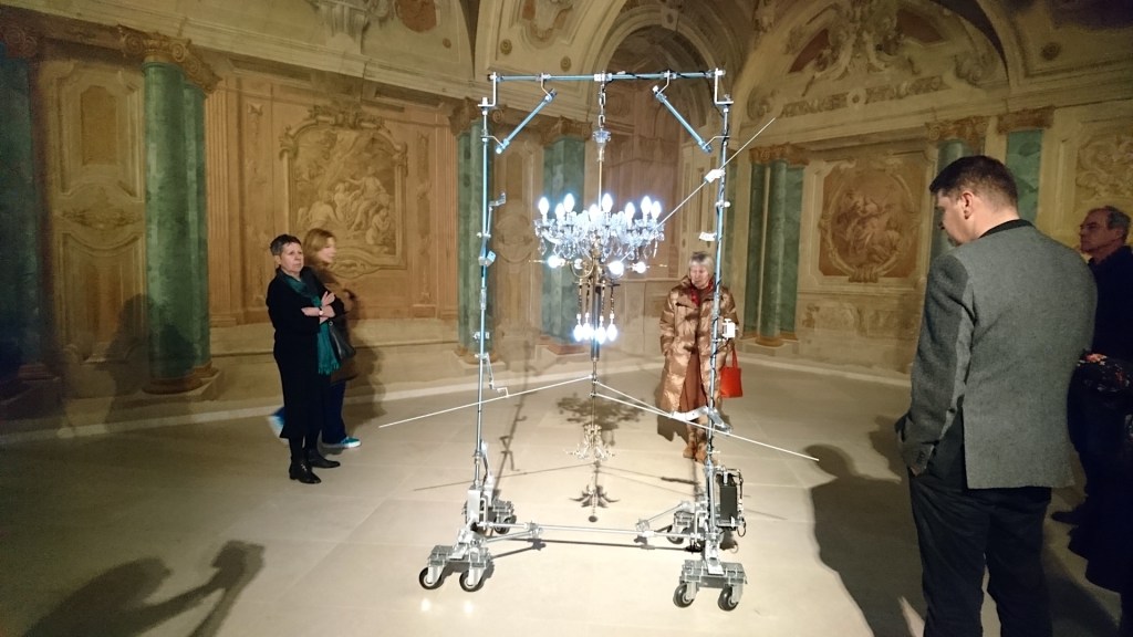 „Großer Bahnhof“ für Marina Faust im Oberen Belvedere, anläßlich des Ankaufes von Carlone Contemporary, ambulant#05, einer großen Skulptur, die alles „auf die Schaufel nimmt“, Glanz und Glorie, sowie standfeste Skulptur; das Ding ist fahrbar und hat ein leuchtendes Herz aus diversen Lustern komponiert, die auch leuchten.
