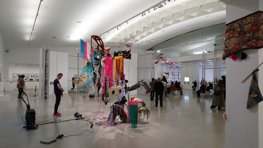 Orientierung ist eine schwierige Sache geworden, in der Kunst und auch sonst. Diese Ausstellung im MUMOK stellt das dar, und noch viel mehr ersichtlich ist der aktuelle Zustand während der mumok Matinee, in der another stage – ME THE PEOPLE 3 mit diversen Geräuschen und Bewegungen mit zum Teil auch klassischen Musik Instrumenten agieren, während das Publikum ebenfalls mitten drin sein darf, also sich auch im Ambiente bewegt. Kunst zur Zeit. o. k.