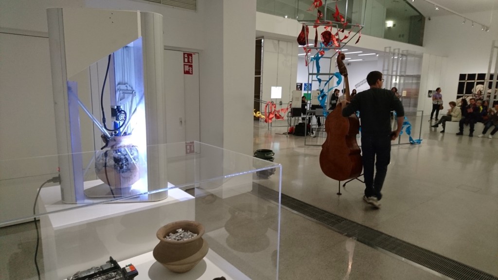 In dieser Konstellation, Ausstellung, Konzert, alles sehr wohl kuratiert, mit professionellen Künstlern bestückt, von einem eher bewußten Publikum besucht, jung und fancy bis alternativ und alt, kommt das Sammelsurium an Fundstücken wie ein Endzeit Szenario daher, welches eine Zeitspanne der Hochkultur beschließt, und? wer weis schon was dann kommt……alles offen? oder im Gegenteil? ohne Ego?