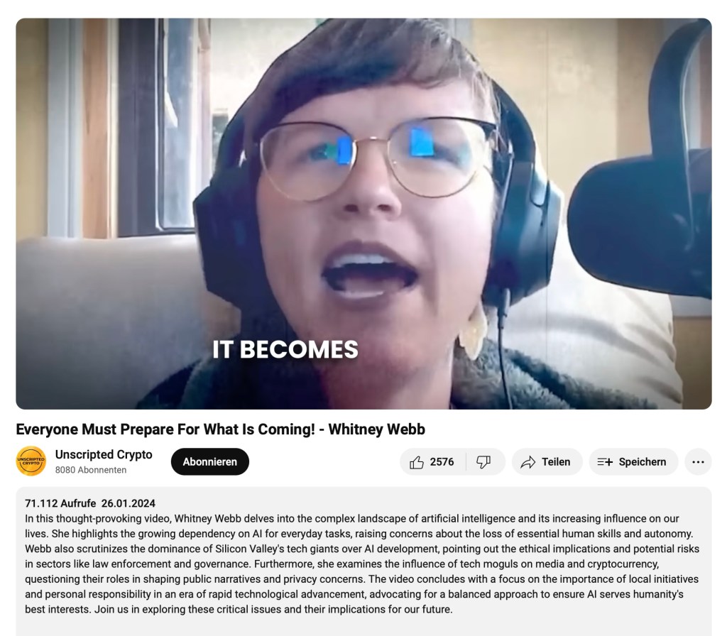 Sehr spannend was Whitney Webb zu AI zu sagen hat: