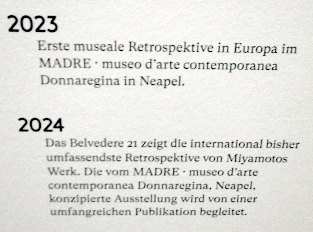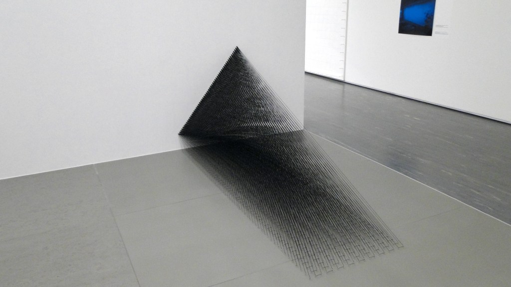 Im Sommer schielen die Darbietungen immer auf die Massen, daher bekannte Namen, die schon bald wer gehört hat. KAZUKO MIYAMOTO ist nicht so bekannt, die Ausstellung ist einer Entdeckung der Direktorin zu danken, die sie während ihrer Leitung des Lentos in Linz gemacht hat; die Künstlerin die in New York residiert hatte in Linz diverse Auftritte die überzeugten. Ihre Kunstwerke kann man in der Mehrzahl nicht transportieren, sie bestehen aus Fäden, die im Raum gespannt werden, sehr exakt, sehr aufwendig , die also immer wieder neu installiert werden müssen, bei jeder Ausstellung. Zudem sind ihre Auftritte im musealen Kontext erst jetzt gekommen.