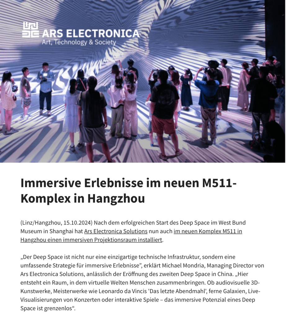Die Ars Electronica expandiert – die technischen/künstlerischen Fähigkeiten sind gefragt…von Linz nach China, nicht umgekehrt, das muss man würdigen, schließlich ist man in China „up to date“…..