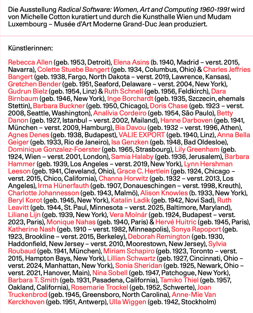 Auf der Suche nach Kunst ….. noch zu sehen in der Heidi Horten Collection „Light Sound Senses“ und demnächst in der Kunsthalle Wien: Radical Software: Women, Art and Computing 1960-1991