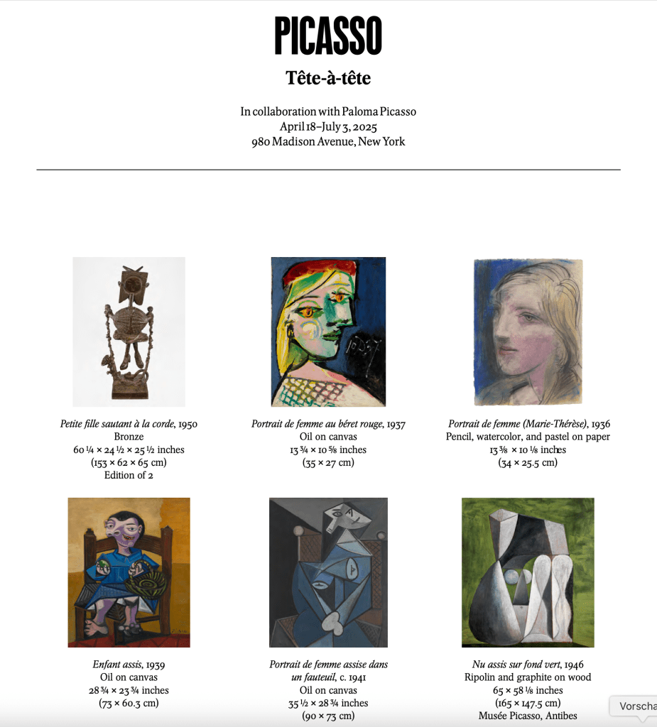 Eine besonders schöne Ausstellung von Picasso in New York, zeigt so vielschichtige Porträts, wie sie von Genies gesehen werden können + eine selten gut gelungene Satire zeigt ein Genie das gerade wieder einmal einen Schwenk im Leben machte, witzig und intelligent.