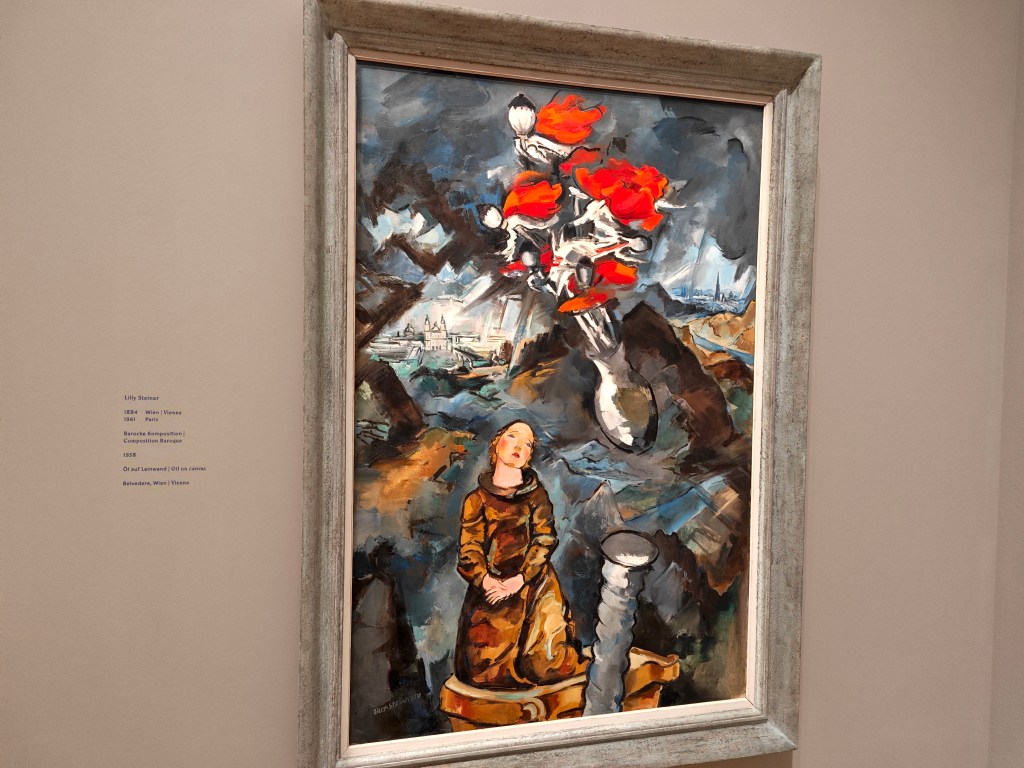 Lilly Steiner, 1884 Wien – 1961 Paris, ein Bild (Öl auf Leinwand, was als Königsdisziplin der Männer benannt wurde) hat vielleicht mit weiblicher Sicht die Männerdomäne geknackt. Drama und Trauer in temperamentvoller Pinselführung, spricht so viele Komponenten an aus denen Leben besteht. Das Bild wird als „Barocke Komposition“ ausgewiesen, ist 1938 entstanden, und hat zeitlose Gültigkeit.