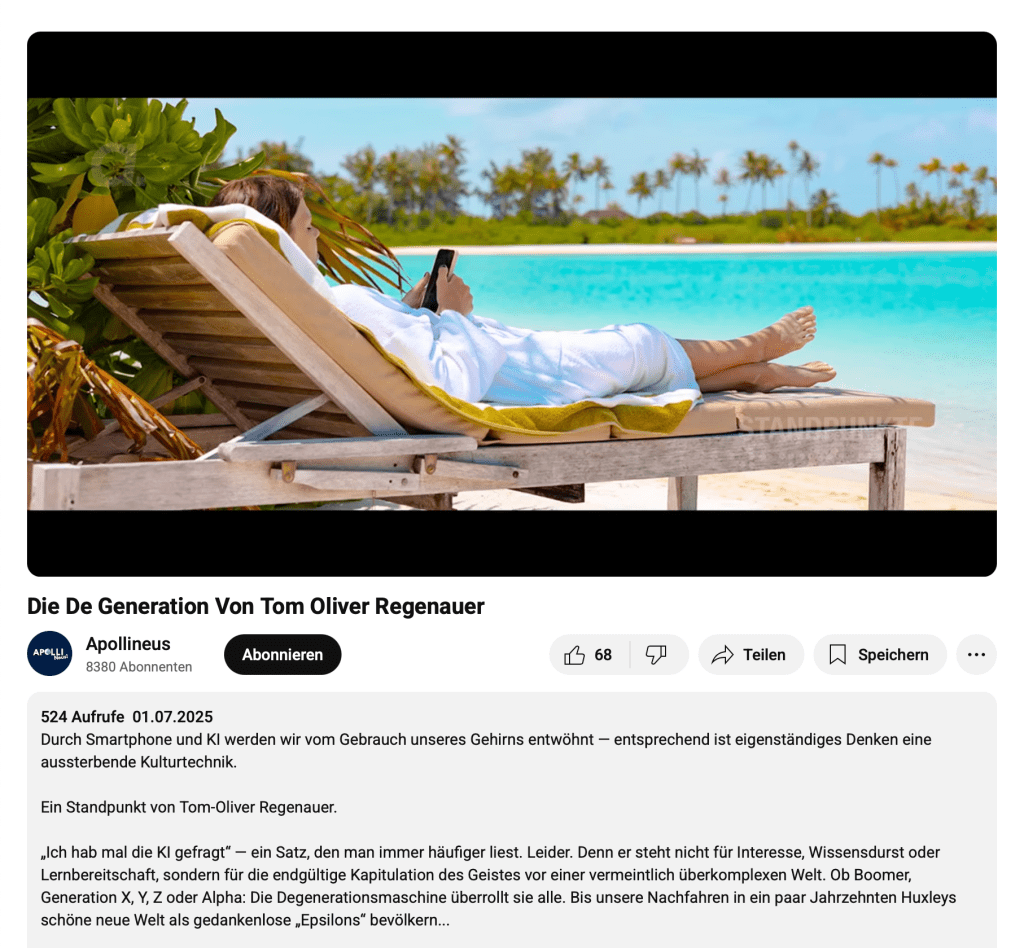 Verblöden wir kontinuierlich? Welche Rolle spielt dabei KI? Was ist vernünftig? Wie können so absurde Dinge geschehen? alles hat für irgendwen auch einen Vorteil.