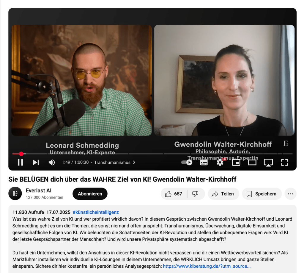 Sehr spannend ist das Gespräch des KI-Experten mit der Philosophin + Autorin….er wollte auch der Gegenseite eine faire Chance geben.