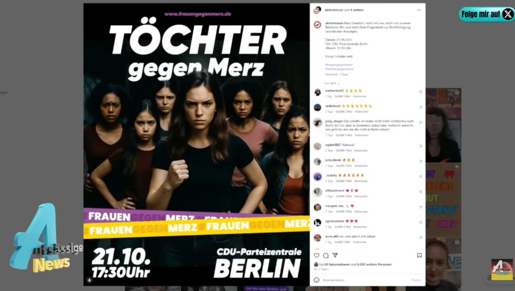 In Deutschland engagiert sich ebenfalls die weisse Mittelklasse ach so sehr für Multikulti, auch wenn tatsächlich vor allem junge weisse Mädchen die Opfer dieser Strategie sind. Und, was auf dem Plakat ist