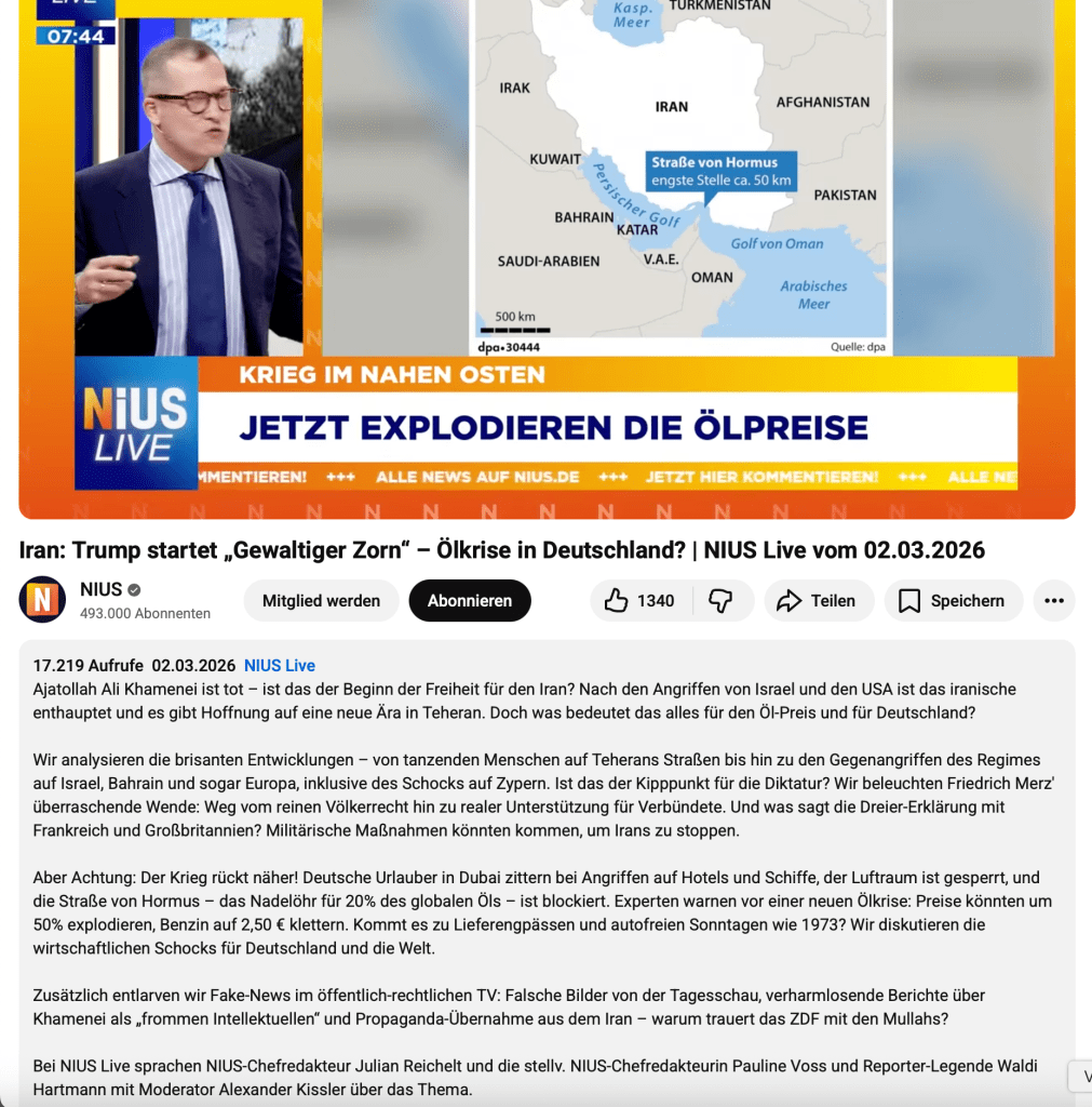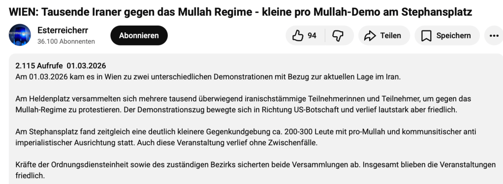 Seit dem 28. Februar 2026 scheint es aber auf vielen Kanälen und in vielen Medien doch eine andere Art der Erklärung von Frauen zu geben, die immer das Unrecht das dem Iranischen Volk, und vor allem den iranischen Frauen angetan wurde und wird, in den Vordergrund stellen, alle anderen Aspekte Nachreihen, und den Erklärungen von männlichen Fachleuten aus diversen Ländern.